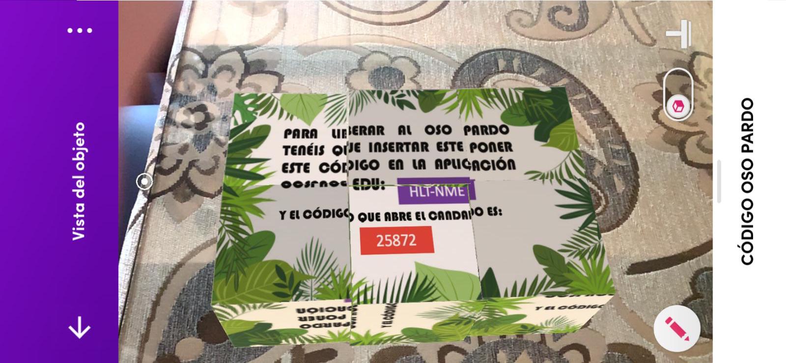 Una vez tengamos formados los grupos entregaremos a cada uno un MergeCube y una tablet. A continuación, dependiendo del hábitat que tengan se les dará un código para que ingresen en la aplicación CoSpaces Edu y empiecen la liberación.